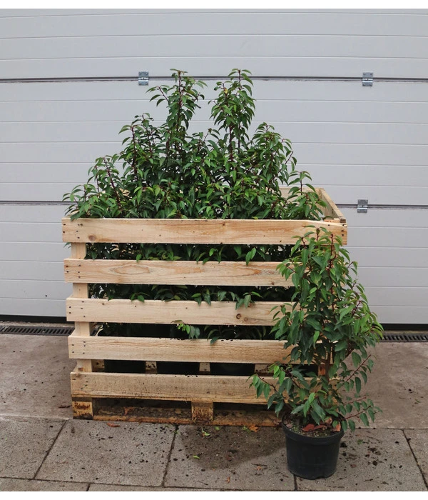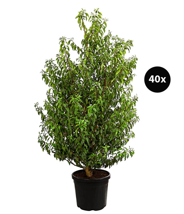 15 Meter Portugiesischer Kirschlorbeer ‚Angustifolia‘, 40 x 7,5 Liter