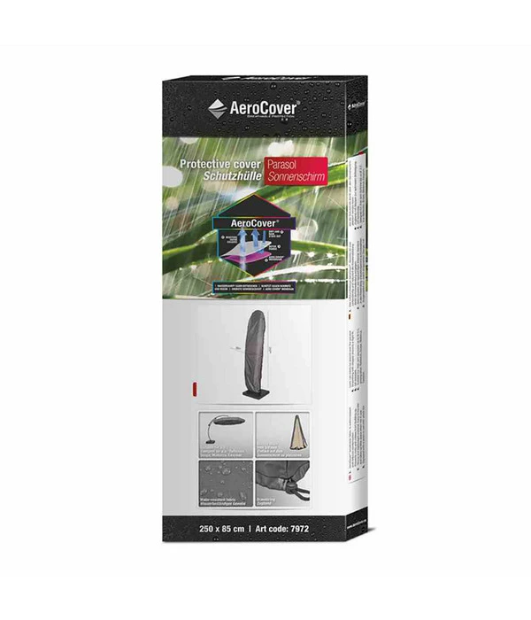 Die Aero Cover-Ampelschirmhülle verfügt über eine atmungsaktive Membran, die die Kondensation nach außen transportiert und gleichzeitig das Eindringen von Wasser, Schmutz und Staub verhindert. Somit ist ein umfassender Schutz für Ihren Schirm garantiert. Das Solution Dyed Gewebe garantiert zudem eine hohe und lang anhaltende Farbechtheit. Der Schoner ist mit einem eingenähten Zugband sowie 2 Stoppern an zwei Seiten ausgestattet, die eine optimale Passform sicherstellen. Die Beschaffenheit aus leichtem RipStop-Polyester vereinfacht zudem die Handhabung der Schutzhülle. Am Überzug ist eine Aufbewahrungstasche befestigt, in der Sie Ihre Umhüllung einfach und sicher verstauen können. Ein eingenähter Glasfaserstab ermöglicht zudem das Aufsetzen der Hülle ganz ohne Leiter. Zögern Sie also nicht länger und bieten Sie Ihrem Schirm den Schutz, den er verdient.
