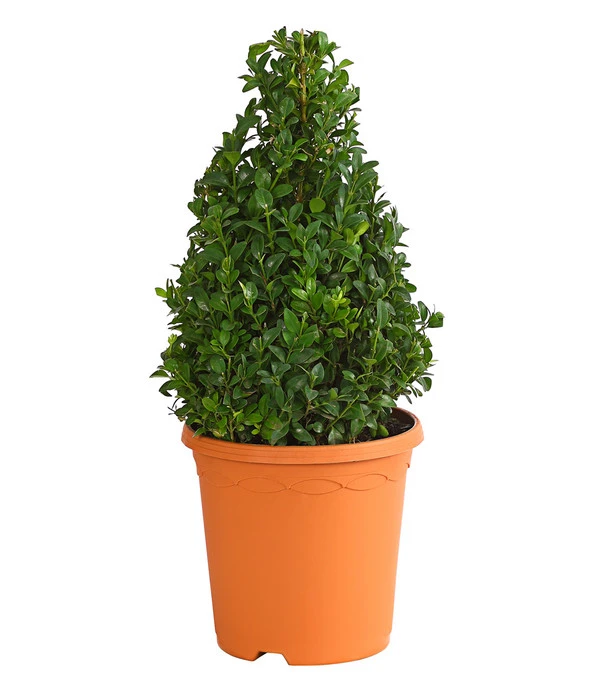 Die Verwendungsmöglichkeiten der Pflanze sind unerschöpflich. Ob als Hecke, Einfassung, Einzel- oder Gruppengehölz, in Steingärten, auf Gräbern oder als Trog- oder Kübelbepflanzung – überall setzt der vielseitige Buchs dekorative Highlights. Immer beliebter wird er heute bei Besitzern moderner Gärten, weil er im geometrischen Formschnitt ideal moderne Architektur ergänzt. In der Kegelform kann der Buchs an vielen Orten rund ums Haus einen interessanten Akzent setzen. Sehr eindrucksvoll wirkt der Kegel zum Beispiel als Kübelpflanze in einem attraktiven Topf am Hauseingang oder auf einem Treppenabsatz. Auch in einer Rabatte wird er zwischen niedrigen Pflanzen sehr schön zur Geltung kommen.