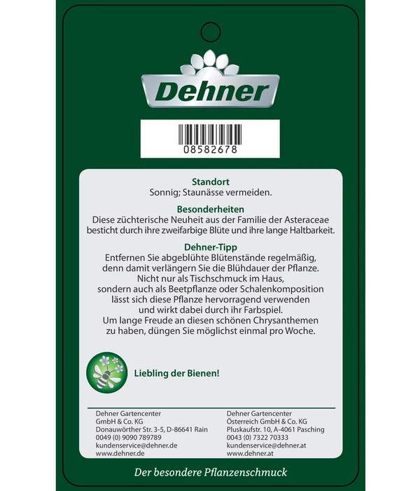Trotz ihrer Blütenpracht gehört die Chrysantheme ‘Cirus‘ zu den anspruchslosen Pflanzen. Geben Sie ihr einen hellen, sonnigen bis halbschattigen Standort, schützen Sie sie aber vor praller Mittagssonne. Das A und O für das Wohlergehen der ‘Cirus‘ ist eine ausreichende Versorgung mit Wasser. Gießen Sie die Zierpflanze regelmäßig, so dass der Boden ständig feucht ist. Gießen Sie auch, wenn es regnet, denn durch den dichten Wuchs kommt oft nicht genug Wasser an den Wurzelballen. Gerne nimmt die Chrysantheme ‘Cirus‘ während der Blütezeit eine wöchentliche Düngergabe, das spornt ihre Blühfreude an. Ebenso wie das Entfernen verblühter Pflanzenteile.