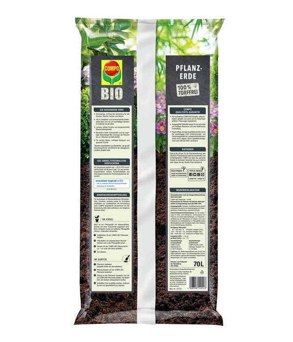 Mit der aus dem Hause COMPO stammenden BIO Pflanzerde können Sie Ihren Traum vom ökologischen Landbau umsetzen und somit dem aktuellen Trend folgen. Erfreulich ist auch, dass sich die Verpackung als umweltfreundlich erweist, da sie zu 80% aus Altplastik besteht. Also greifen sie zu, um Ihren Pflanzen beste Bedingungen zu bieten, damit sie prächtige Blätter und Blüten hervorbringen können.