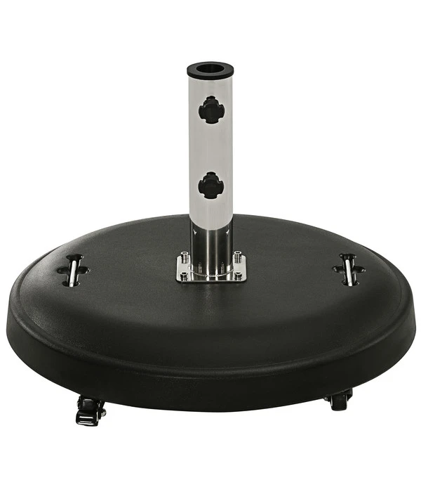 Bei diesem Modell von Dehner handelt es sich um einen besonders stabilen Ständer, der langlebiges Material mit hohem Gewicht vereint. Trotzdem können Sie das Produkt aus Beton und Stahl aufgrund der angebrachten Rollen ganz leicht von A nach B bewegen. Dies ermöglicht Ihnen viel Flexibilität beim Relaxen im Garten. Außerdem eignet sich der Schirmständer für viele Stockmaße und erweist sich somit als unverzichtbarer Helfer für den Außenbereich. Entscheiden Sie sich jetzt für den Betonschirmständer aus dem Hause Dehner, der in gewohnt hoher Markenqualität geliefert wird und Ihnen auf lange Sicht viel Freude bereitet.