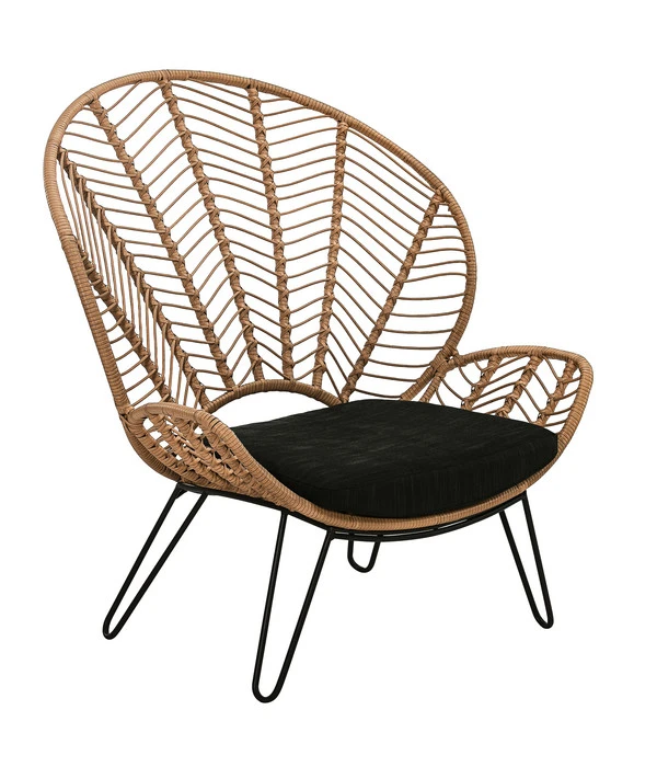 Zu dem naturfarbenen Geflecht und dem schwarzen Stahlgestell wurde beim Dehner Geflechtsessel Venezia noch ein schwarzes Kissen kombiniert. Eine stimmige Farbkombination, die trendy ist und den Sessel zum Hingucker auf der Terrasse oder dem Balkon macht. Wenn Sie dann noch Ihre Palme oder eine andere stattliche Grünpflanze in einem schwarzen Übertopf mit ins Feie nehmen, ist das Boho-Feeling perfekt.