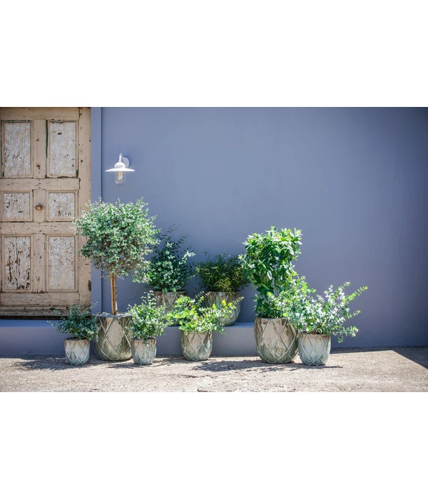 Sie wollen Ihre Blumen in einem schönen Topf besonders hervorheben? Mit dem Keramik-Topf Rombus aus dem Hause Dehner ist das ganz leicht! Das moderne Wohnaccessoire ist ein handgefertigtes Unikat, das mit einer wunderschönen Glasur und einem attraktiven Rautenmuster besticht. Als schickes Einzelstück fügt es sich in jeden Dekostil ein und setzt dennoch an der richtigen Stelle den Blickfang, den Sie sich für Ihr Gewächs wünschen. Bepflanzen Sie ihn zum Beispiel mit einer Orchidee, Glücksfeder, Kentiapalme oder einer Mondblume und freuen Sie sich auf den schmückenden Anblick aus hübschem Topf und Ihrer Lieblingspflanze.