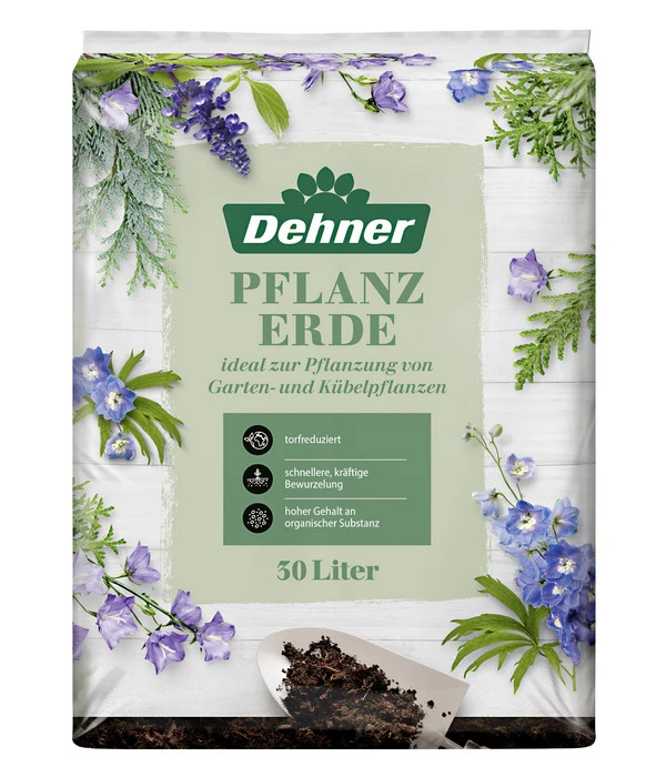 Ob Ziergehölze oder Heckenpflanzen, ob einjährige Sommerblumen oder mehrjährige Stauden – alle werden sich in diesem Substrat wohl fühlen und ausgezeichnet gedeihen. Denn die Dehner Pflanzerde enthält hochwertige organische Substanzen, die humusbildend wirken und auf diese Weise für eine schnelle und kräftige Bewurzelung sorgen. Die Erde hat außerdem einen niedrigen Salzgehalt und ist deshalb besonders gut verträglich für Ihre Pflanzen. Und mit einem mittleren pH-Wert zwischen 5,5 und 6,5 ist sie ideal für die meisten Gartenpflanzen.