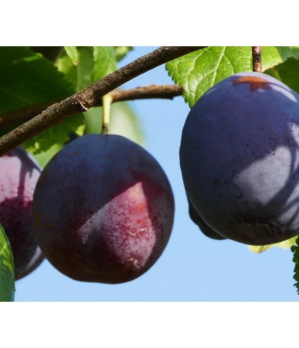 Die Pflaume ‚The Czar‘ ist die ideale Sorte für den Hausgarten. Die Pflanze hat einen mittelstarken, schlanken sowie aufrechten Wuchs. Ihre Früchte sind mittelgroß, ovalrund und färben sich schwarzblau bis violett. Dabei sind sie meist hellblau bereift, was ihnen ein besonderes Aussehen verleiht. Die Früchte haben eine eher dünne Haut und ein weiches, saftiges Fruchtfleisch, das rötlich gelb ist. Die robuste Pflaumensorte bringt einen regelmäßigen, sehr hohen Ertrag. ‚The Czar‘ wurde 1874 in England gezüchtet und noch im 19. Jahrhundert nach Deutschland gebracht. Durch ihre Saftigkeit eignen sich die Pflaumen vor allem zum Frischverzehr. Sie können aber auch verarbeitet oder getrocknet werden. Ernten Sie die Früchte nur, wenn sie tatsächlich reif sind, denn sie können nicht nachreifen. Pflaumen enthalten viele nützliche Mineralien und Vitamine. Was spricht also gegen einen eigenen Baum mit leckeren, gesunden Pflaumen?