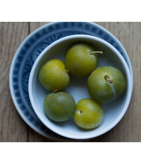Bei der ‚Großen Grünen Reneklode‘ handelt es sich um eine der wertvollsten Sorten, die schon im 15. Jahrhundert in Frankreich bekannt war. Ihre Ursprünge sind nicht geklärt, man vermutet allerdings, dass sie aus Syrien oder Armenien stammt. Die Reneklode bringt mittelhohe und regelmäßige Erträge. Die Sorte ist vor allem wegen ihrem Geschmack sehr beliebt. Die Früchte sind sehr süß, saftig und kräftig würzig. Sie sind gelb-grün, können sonnenseits rötlich sein und leichte Roststellen aufweisen. Die Haut ist sehr weich und lässt sich gut ablösen. Aufgrund des tollen Geschmacks eignen sich die Renekloden hevrorragend zum Frischverzehr, aber auch zum Einmachen oder Verarbeiten. Die weiß blühende Pflanze gehört zu den selbststerilen Sorten und benötigt deshalb einen Befruchter. Hierfür eignen sich zum Beispiel: Mirabelle von Nancy, Oullins Reneklode oder die Reneklode ‚Graf Althans‘. Der Name der edlen Früchte stammt übrigens von einer französischen Königin, die Reine Claude hieß.