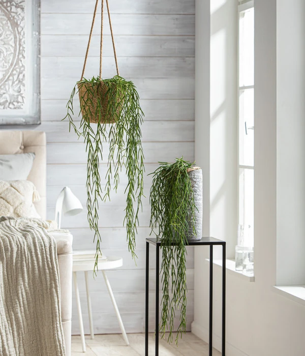 Sie freuen sich jedes Mal, wenn Sie Ihre Hängepflanzen erblicken, und wollen diese in einem schönen Topf in Szene setzen? Dann greifen Sie zur Ampel Igmar von Dehner. Das stylishe Accessoire wurde aus Wasserhyazinthe gefertigt, was ihm einen außergewöhnlichen, naturnahen Look verleiht. Diese neutralen Töne passen optimal zum skandinavischen Einrichtungsstil, fügen sich aber dank der dezenten Farbgebung auch in viele andere Designs hervorragend ein. Ob Wachsblume, Frauenhaarfarn oder das Felsen-Dickblatt, in dieser schönen Ampel kommt jede Hängepflanze ideal zur Geltung. Vielleicht entscheiden Sie sich auch für ein Ampel-Duo, um in Ihren Räumen für noch mehr Pflanzenvielfalt zu sorgen. Mit dem hübschen Hängetopf Igmar ist das überhaupt kein Problem.