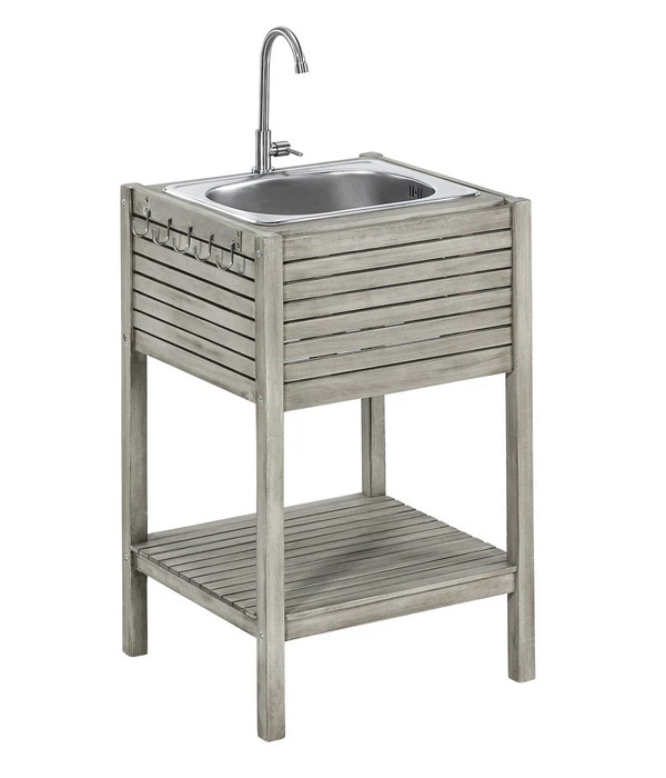 Outdoormöbel aus Akazienholz, mit Spüle und Haken aus Edelstahl