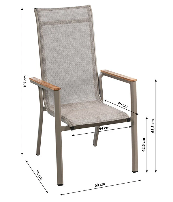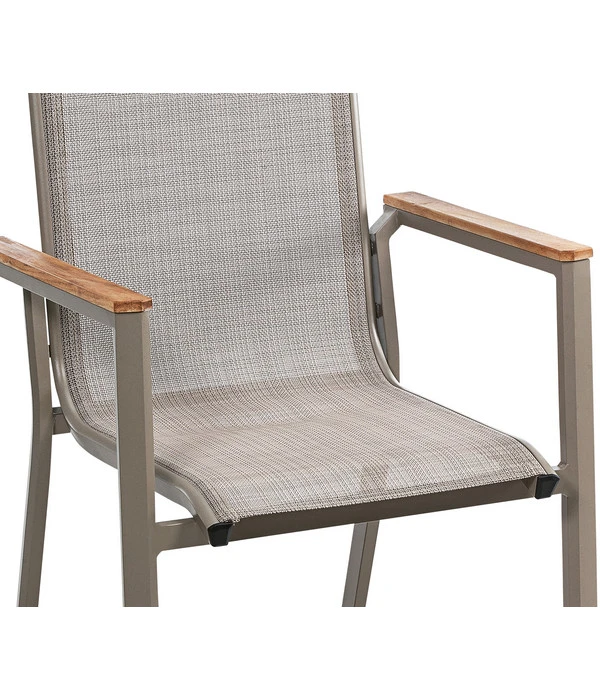 Der Stapelstuhl Cleveland überzeugt nicht nur in puncto Funktionalität, sondern auch durch die bewährte Dehner Markenqualität. Mit dem pulverbeschichtetem Aluminiumgestell, der stabilen Konstruktion und dem Textilenbezug erweist sich der Sessel als sehr robust und witterungsbeständig. Nach einem Regenschauer trocknet der Bezug im Handumdrehen und ist bereit für den nächsten Einsatz. Damit sich bei Ihren entspannten Runden im Garten, auf der Terrasse, oder auf dem Balkon ein Höchstmaß an Gemütlichkeit breit macht, verspricht der Stapelstuhl Cleveland von Dehner eine hervorragende Bequemlichkeit. Angenehme Lehnen und eine ergonomische Form machen den Sessel zu einem echten Komforterlebnis. Bestellen Sie doch gleich mehrere Exemplare des Stapelstuhls Cleveland und richten Sie sich eine schöne Sitzgruppe ein!