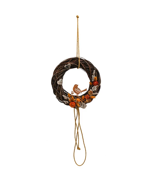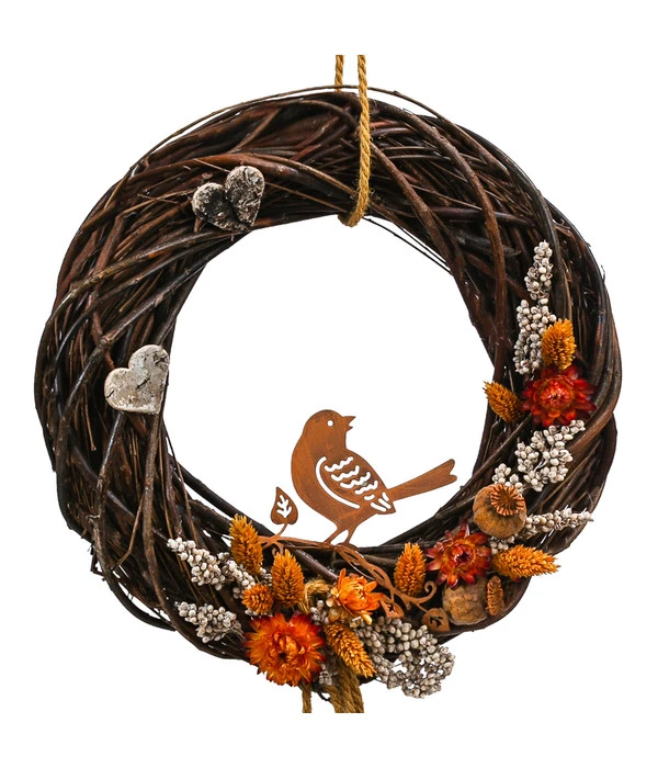 Der Türkranz Heli aus dem Hause Dehner ist mit seiner Vogel-Silhouette mit trendigem Rost-Finish ein kreativer Hingucker. Außerdem kommt der herbstliche Charakter des Weidenkranzes sehr schön durch die handgebundene Verarbeitung zur Geltung, die jedes Stück zum Unikat macht. Besonders dekorativ wirkt der Artikel von Dehner mit passender Garten-Dekoration, beispielsweise mit einem verspielten Deko-Stab oder einem Metall-Windrad, doch auch im Wohnzimmer werden Sie sich an diesem Kranz mit detailverliebtem Design erfreuen. Geben Sie Ihre Bestellung auf und lassen Sie sich schon bald vom herbstlichen Flair verzaubern!