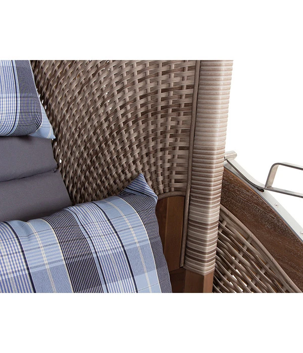 Das stabile Gestell besteht beim Strandkorb Greenline 175 aus FSC®-zertifiziertem Akazienholz, also einem Holz, das von Natur aus perfekt auf ein langes Leben unter freiem Himmel ausgerüstet ist; das Geflecht ist aus ebenfalls wetterfestem Kunststoff. Für die Sitz- und Rückenpolster wie die kleinen Kuschelkissen wurde eine hochwertige, strapazierfähige Polyester-Qualität. Noch ein Pluspunkt: Sie können die Kissen komplett herausnehmen und bei Bedarf waschen.