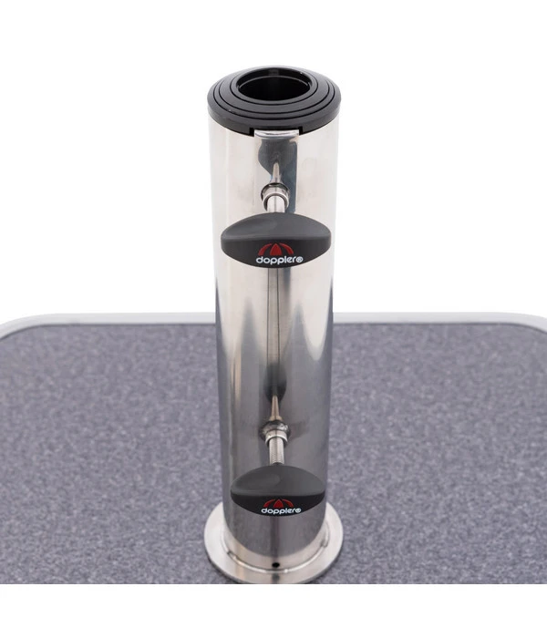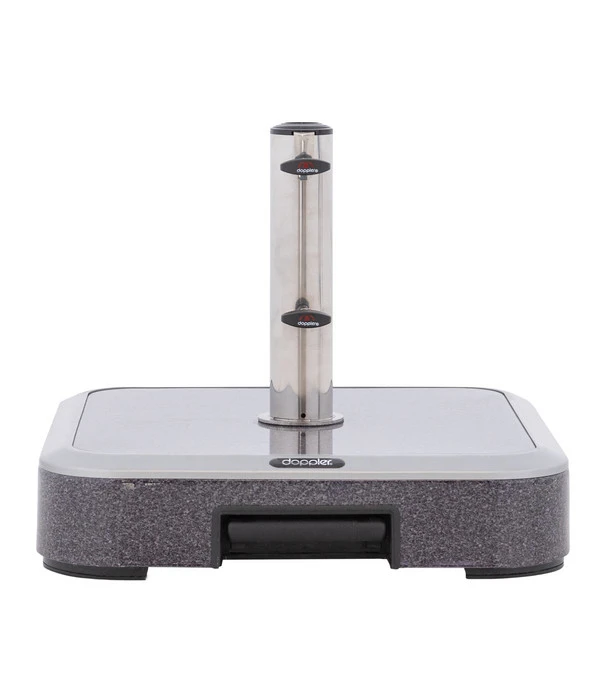 Der Doppler Schirmständer Trolley begeistert nicht nur durch eine formschöne Optik, sondern auch durch eine hohe Funktionalität. Mit wenigen Handgriffen haben Sie den Schirm in die Öffnung gesteckt und ihn mit Schrauben sicher fixiert. Wenn die Sonne wandert oder Sie gerne woanders Schatten hätten, lässt sich der Ständer dank der leichtgängigen Rollen und des ausziehbaren Griffs ganz einfach versetzen. Selbstverständlich bleibt der Schirmständer Trolley von Doppler aber ansonsten sicher an seinem Platz. Bestellen Sie jetzt dieses praktische Accessoire für Ihren Außenbereich und der Sommer kann kommen.