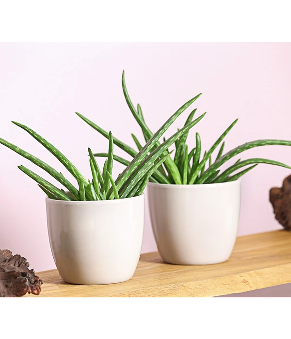 Fast jeder hat schon einmal von Aloe Vera gehört, deren heilsame Wirkstoffe vor allem in Kosmetik-Produkten Verwendung finden. Aber kaum jemand weiß, wie die Pflanze, die diese Wirkstoffe produziert, aussieht. Hier haben Sie die Gelegenheit, die sehr dekorative Blattschmuckstaude kennenzulernen. Sie gehört zur Gruppe der sukkulenten Pflanzen, deren Kennzeichen ihre fleischigen Blätter und Triebe sind, in denen diese Topfpflanzen Wasser über lange Zeit speichern können. Die Blätter der Aloe Vera sind rosettenartig um die Pflanzenmitte angeordnet, sehr schmal und spitz zulaufend. Fühlt sich die Aloe Vera bei Ihnen wohl, wird sie Sie in einigen Jahren sogar mit leuchtend gelben Blüten überraschen.