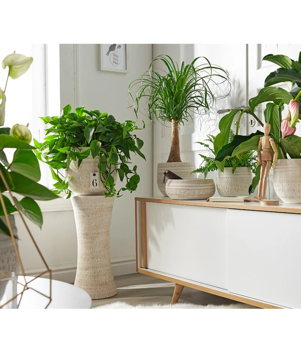 Die eigene Wohnung elegant und natürlich zu gestalten ist eine große Aufgabe. Umso schöner ist es, wenn genau dies gelingt. Die Efeutute ist das perfekte Gestaltungselement für den Innenbereich, denn sie bringt mit ihren wunderschönen ledrigen und creme-weiß-grünen Blättern Leben in jeden Raum. Egal ob hängend in einer Ampel oder als Solist in einem Topf, die Pflanze macht mit ihrer tollen und exotischen Urwald-Optik überall eine gute Figur. Besonders an hellen Standorten erstrahlt die auffällige Panaschierung der Blätter und wird wirklich jeden Beobachter beeindrucken.