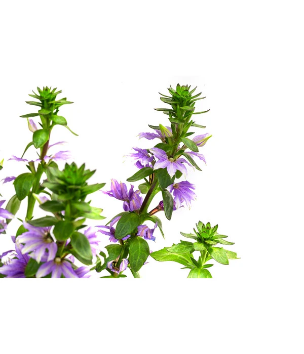 Sie ist noch nicht so bekannt wie ihre klassischen Balkon-Kolleginnen, die Petunien und Geranien, und doch kann sie es an Liebreiz und Blütenreichtum locker mit diesen aufnehmen. Ursprünglich stammt die Fächerblume aus dem weit entfernten Australien und Tasmanien und wird auch erst seit Ende des 20. Jahrhunderts bei uns angeboten. Und doch hat sie sich schnell zu einer beliebten Sommerpflanze entwickelt, auf die viele Balkongärtner nicht verzichten möchten. Die fünf Blütenblätter sind tatsächlich fächerförmig angeordnet, leuchten in tiefem Violettblau und werden von Mai bis zum ersten Frost zur Schau gestellt. Da Fächerblumen ihre bis zu 1 m langen Triebe elegant über Topf- und Blumenkastenränder fallen lassen, können sie den alten Stars im Ampeln und Hanging Baskets ernsthafte Konkurrenz machen und jeden Balkon und jede Terrasse in ein traumhaftes Blütenparadies verwandeln.