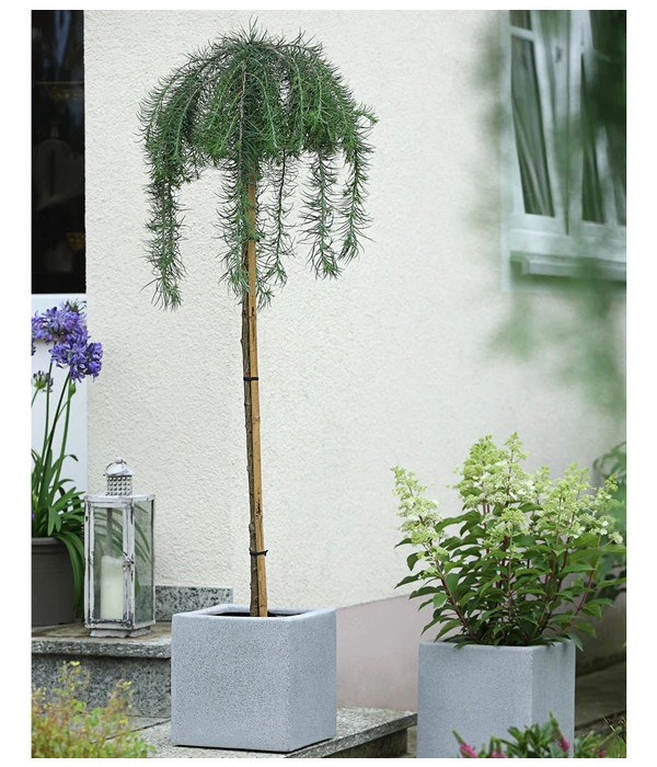 Lärchen sind relativ pflegeleichte Gartenpflanzen. In sonnigen bis halbschattigen Lagen stehen sie am liebsten in nährstoffreicher, humoser Erde, die gut durchlässig und feucht sein sollte. Durch die Veredelung auf ein Stämmchen bleibt die Wuchshöhe gleich, nur die Krone wird mit der Zeit etwas üppiger. Ein regelmäßiger Rückschnitt der Japanische Hänge-Lärche ‚Stiff Weeper‘ ist nicht notwendig.