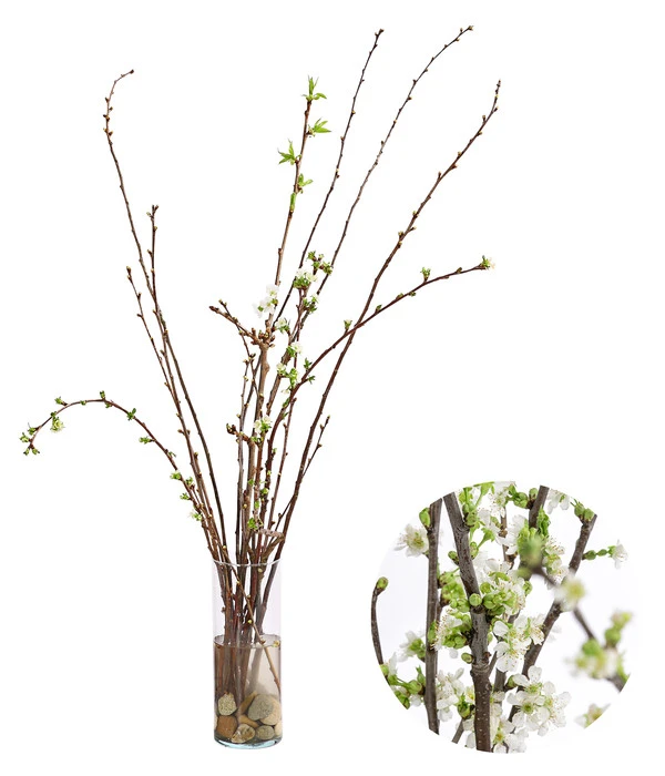 Kaum eine andere Jahreszeit kann sich unserer Aufmerksamkeit so sicher sein wie der Frühling, wenn wir gespannt die ersten bunten Blüten und hellgrünen Blattspitzen erwarten. Auch in den Wohnräumen will man jetzt die ersten Frühlingsgefühle spüren. Am einfachsten holt man sich blühende Frühlingszweige, die das Wiedererwachen der Natur und das neu aufblühende Leben symbolisieren. Kirschzweige zeichnen sich durch ihre wunderschönen, kleinen weißen Blüten aus und eignen sich hervorragend als frühlingshafte Dekoration für Ihre Wohnung. Lange Zweige können Sie einzeln in hohe Vasen einstellen, mit kleinen Zweigabschnitten lassen sich hübsche Tischdekorationen gestalten.