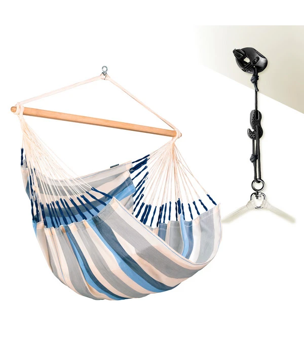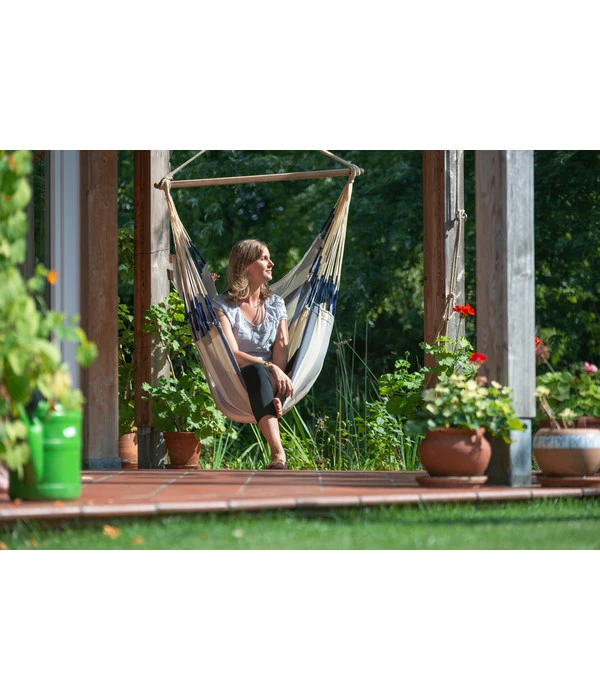 Sicherlich fühlen auch Sie sich dann besonders wohl, wenn Sie wissen, dass auf Qualität und Verarbeitung Verlass ist. So, wie es Ihnen auch der La Siesta Hängestuhl Kingsize Domingo bietet. Denn er wurde nicht nur aus einem robusten, langlebigen Stoff hergestellt, der zudem wetterfest ist und schnell trocknet. Ihre neue Entspannungs-Schaukel wurde direkt in Kolumbien mit viel Liebe zum Detail von Hand angefertigt.