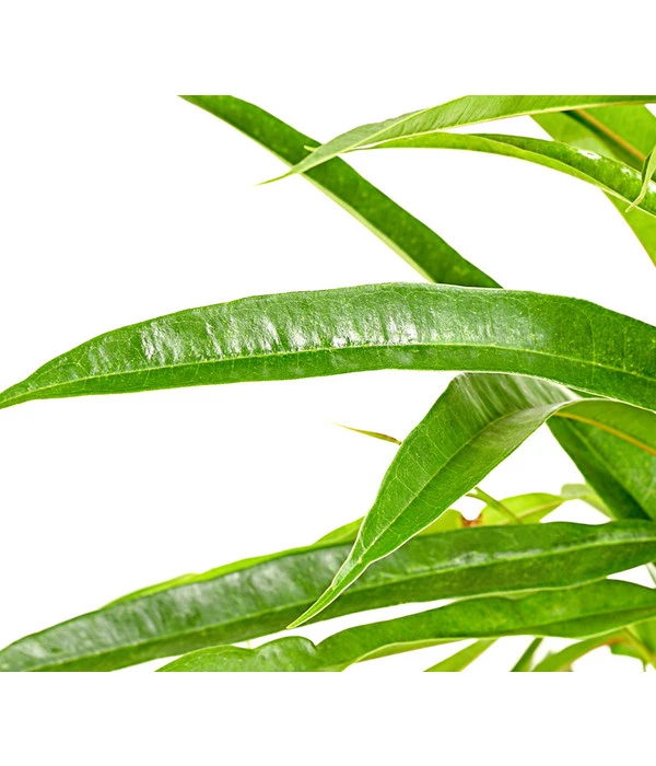 Erst mit Zimmerpflanzen wird auch die schönste Einrichtung zum individuellen Paradies. Wer das zu Hause erreichen möchte, sucht nach Pflanzen, die ein bestimmtes Flair verbreiten und die zum eigenen Geschmack passen. Der Langblättrige Feigenbaum ‚Alii‘ ist ein ganz besonders anmutiges Gewächs, das trotz seiner Größe locker und leicht wirkt. Und das liegt an seinem wunderschönen Blattwerk. Die langen, schmalen, lanzettlichen Blätter verleihen ihm diesen eleganten Auftritt und erinnern ein wenig an die Blätter des Bambus. Der Langblättrige Feigenbaum ist eine Art aus der Gattung Ficus, die zur Familie der Moraceae, der Maulbeergewächse, gehört. Alleine die Gattung Ficus umfasst ca. 1000 Arten. Die immergrüne Pflanze stammt von der Insel Java und ist in vielen Wohnzimmern und Büros zu finden. Sie eignet sich ganz hervorragend als Solitärpflanze, die zwei Meter und mehr messen kann.