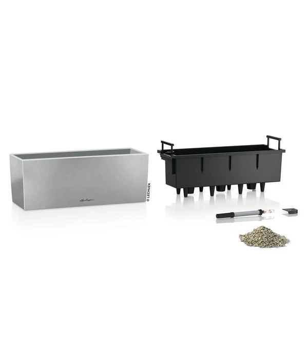 Wenn Sie auf der Suche nach einem edlen Blumenkasten für den öffentlichen Bereich oder Ihren Privatgarten sind, der durch sein tolles Außendesign besonders auffällt, sind Sie mit dem rechteckigen LECHUZA® Edelstahl-Kasten Balconcera Steel fündig geworden. Dieser charmante Pflanzbehälter überzeugt nicht nur dank der satinierten Oberfläche seiner aus hochwertigem Edelstahl gefertigten Außenhülle, sondern punktet ebenso durch einen Pflanzeinsatz aus recyceltem Kunststoff. Freuen Sie sich auf eine simple und effiziente Bepflanzung .