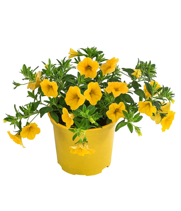 Das kleinblütige Petuniensortiment steht den großblütigen Pflanzen in nichts nach. Neue, bisher unbekannte Farben bereichern Kästen sowie Kübelgefäße. Auch unsere gelbe Sorte ist mit Feuereifer dabei, Knospe für Knospe im Rhythmus der Sonnenstrahlen zu öffnen. Nicht selten bilden die regenfesten Pflanzen so dichte Blütenkugeln, dass man bald schon kein Laub mehr sieht. Diese exklusive Neuheit der hängenden Zauberglöckchen weist mittelgroße Blüten auf, die mit ihrer knalligen gelben Farbe, wirklich jeden verzaubern. In Kombination mit anderen kleinblumigen Balkonpflanzen bildet diese Pflanze vom Frühjahr bis zum Herbst wahre Blütenbälle. Überzeugen Sie sich selbst von diesem robusten, ausdauernden und besonders dekorativen Sommerblüher.