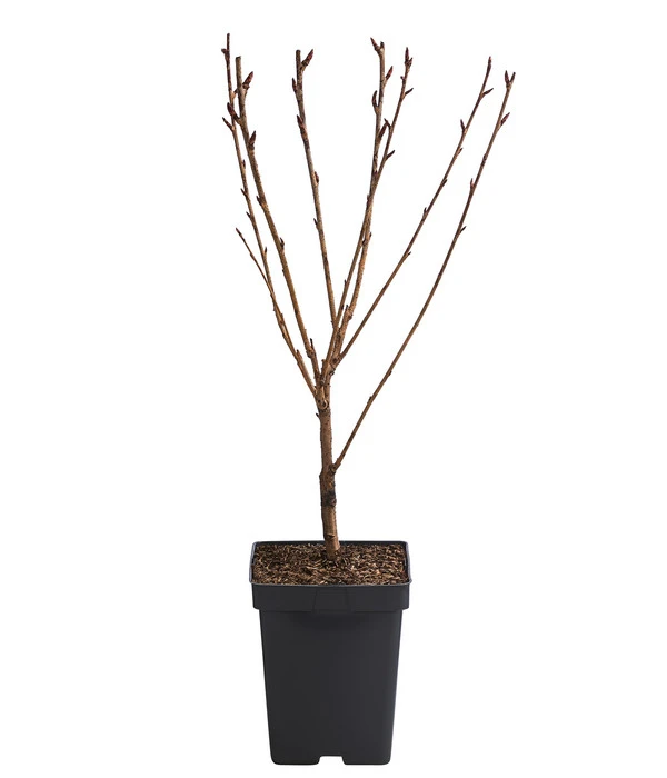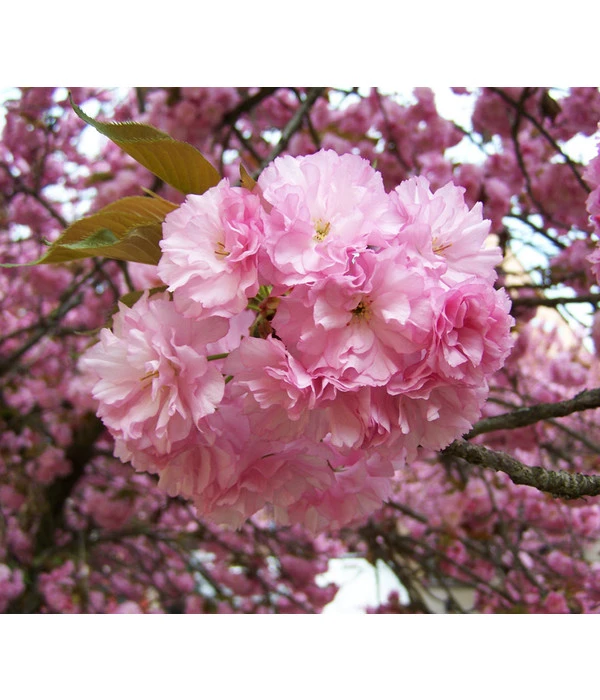 Die Nelken-Kirsche ‚Kanzan‘ gehört zu den Pflanzen, die es sich zur Aufgabe gemacht haben, ihre Umgebung ständig in Erstaunen zu versetzen, indem sie sich immer wieder in einem neuen Look präsentieren. Im Frühling zeigt sich der Blattaustrieb nicht in frischem Grün wie bei den meisten Pflanzen, sondern das Gehölz wählt einen edlen Bronzeton als Laubfarbe und erst im Laufe der Saison färben sich die Blätter glänzend grün. Aber dann hat der Strauch schon die nächste Überraschung parat: Im Mai erscheinen dichte Büschel gefüllter Blüten, die bis zu 6 cm breit werden können, in einem kräftigen Rosaton leuchten und so manchen anderen Blühstrauch locker in den Schatten stellen. Der letzte Akt des Farbenschauspiels ist im Herbst zu bewundern, wenn sich die Blätter der Nelken-Kirsche ‚Kanzan‘ leuchtend gelb färben – wie ein letztes Aufflackern sommerlicher Wärme vor dem Einbruch des Winters. Die Nelken-Kirsche ‚Kanzan‘ wächst als Großstrauch oder Baum mit breit ausladender Krone und kann eine Höhe von 6 – 8 m erreichen.
