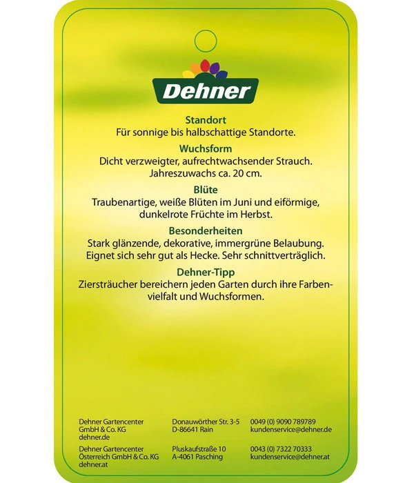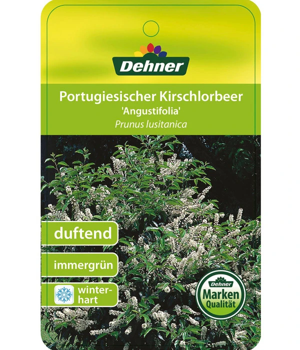 Sie suchen einen immergrünen Zierstrauch, möchten bei sich aber nicht die gleichen Pflanzen sehen wie auf den Nachbargrundstücken? Dann empfehlen wir Ihnen die Portugiesische Lorbeerkirsche ‘Angustifolia‘. Dieses Ziergehölz hat seine Heimat in der südwestlichen Mittelmeerregion und seine kräftigen, dunkelgrünen Blätter erinnern an Echten Lorbeer, was seine südländische Ausstrahlung unterstreicht. Und obwohl die Pflanze Ihnen diesen edlen Blattschmuck das ganze Jahr präsentiert, wird ihr Anblick nie langweilig: Im Juni erscheinen weiße, aufrecht stehende Blütenkerzen zwischen dem grünen Laub und verbreiten einen angenehmen Honigduft, der Bienen und Co anzieht. Im Herbst verlocken schwarze Beerenfrüchte die Vögel zum Naschen. Und mit dieser edlen Optik fügt sich die Portugiesische Lorbeerkirsche ‘Angustifolia‘ in fast jede Ihrer Gestaltungsideen freudig ein. Setzen Sie auf diesen Zierstrauch außergewöhnlich schöne Akzente – als blickdichte Sichtschutzhecke, im Kübel auf der Terrasse oder als ganzjährig attraktiver Blickfang im Vorgarten!
