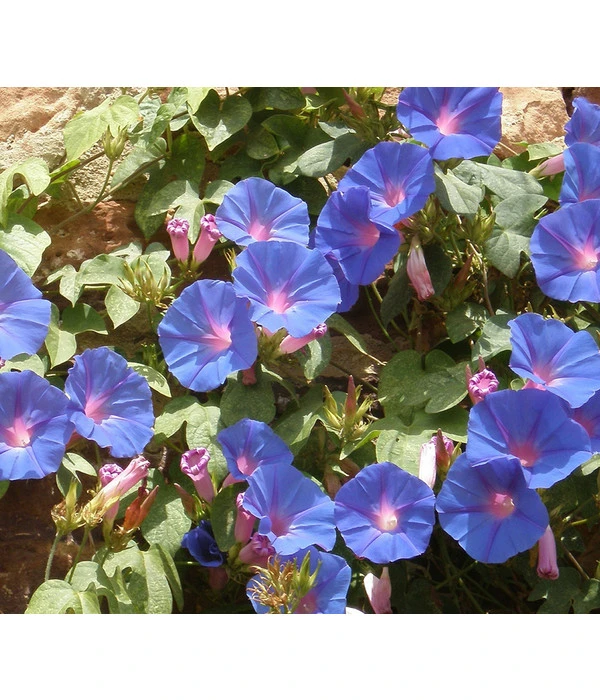 Der fleißige Kletterer erobert an Spalieren Hauswände und hohe Zäune im Nu und bietet daher einen einjährigen, reich blühenden Sichtschutz. Eine Kletterhilfe, an der die Pflanzen Halt finden, ist jedoch frühzeitig anzubringen, damit die Prunkwinden ihre Wuchslänge voll zur Geltung bringen können. Unterstützen Sie die Pflanze mit einem Rankgitter oder gespannten Schnüren, an denen die Ipomoea ihre Triebspitzen umwickeln kann. Selbst kahle Mauern oder langweilige Obelisken, werden mit dieser Pflanze zum echten Blickfang. Eine Kultur im Kübel oder Balkonkasten ist mit der Ipomoea ebenfalls möglich.