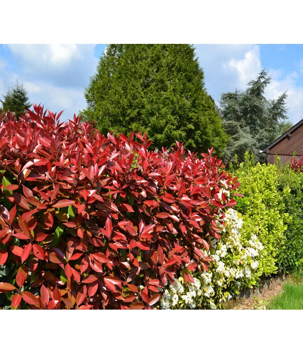 Die Purpur-Glanzmispel ‚Red Robin‘ bildet vom Frühjahr bis zum Herbst als Solitär einen immer wieder interessanten und dekorativen Blickfang, sie kann aber auch gemischte Buschgruppen mit ihrem abwechslungsreichen Farbspiel beleben. Von vielen Gärtnern wird sie auch als dankbare, immergrüne Heckenpflanze geschätzt, da die Gartenpflanze sehr gut schnittverträglich ist. Setzen Sie die Pflanzen in einem Abstand von 30-40 cm, dann wird die Purpur-Glanzmispel ‚Red Robin‘ schnell eine tolle, blickdichte Hecke zum Nachbarn oder zur Straße um ihr Grundstück hochzuziehen.