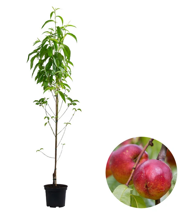 Um der platzsparenden Nektarine ein gesundes Wachstum zu garantieren, benötigt sie an ihrem Standort viel Sonne und einen regelmäßigen Rückschnitt. Ab Juli können Sie dann ihre mittelgroßen, roten Früchte ernten, die Sie mit einem herrlich süß-säuerlichen Geschmack verwöhnen und an heißen Sommertagen für tolle Erfrischung sorgen. Auch mit Ihrem kleinen Hausgarten müssen Sie nicht auf diese köstlichen Leckereien verzichten, wenn Sie die Säulennektarine ‚Fantasia‘ am besten jetzt gleich online bestellen!