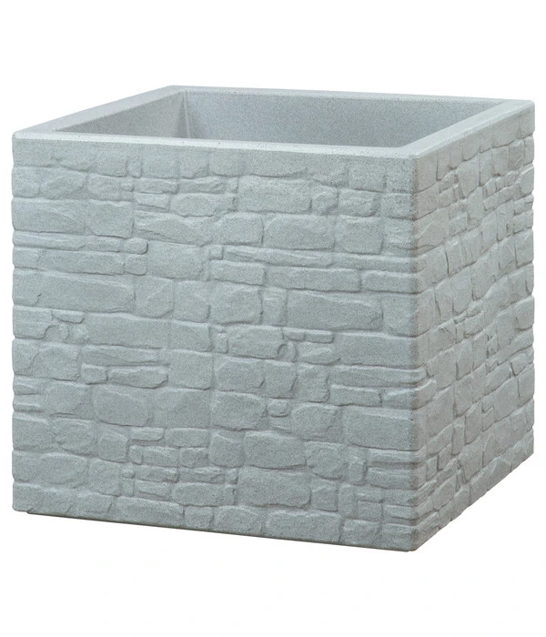Sie haben sich eine neue Pflanze zugelegt und wollen diese mit einem schicken Gefäß ausstatten? Dann sichern Sie sich den quadratischen Kunststoff-Topf Muretto der Firma Scheurich. Für die extra Portion Retro-Feeling erinnert seine Oberflächenstruktur an eine schöne, alte Gartenmauer. Um diesen Vintage-Look noch zu verstärken, können Sie den Topf zum Beispiel mit Zwergrosen, Hortensien oder Lupinen bestücken. Selbstverständlich setzt er mit seiner ausgefallenen Steinoptik auch jedes andere Gewächs perfekt in Szene und sorgt für die Aufmerksamkeit, die es verdient.