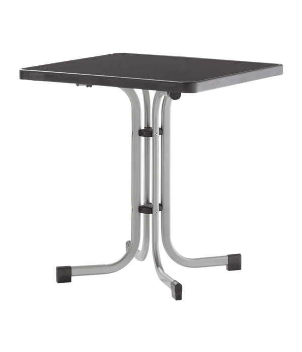 Wer im Sommer gerne seinen Balkon oder die kleine Terrasse zum Outdoor-Wohnzimmer macht, braucht dafür einen Tisch, der sehr flexibel eingesetzt werden kann. So, wie der Sieger Boulevard-Klapptisch mecalit®-PRO. Denn dieser robuste Tisch ist so schnell aufgebaut, wie er wieder beiseitegestellt werden kann und bietet auf seiner ca. 70 x 70 cm Tischfläche ausreichend Platz für Ihre Kaffeerunde, das Grillmenü zu zweit oder, oder. Schnell aufgestellt ist er deshalb, weil sein stabiles, pulverbeschichtetes Stahlrohrgestell sich mit wenigen Handgriffen auf- oder zusammenklappen lässt. Auf diese Weise steht er Ihnen immer dann spontan zur Verfügung, wenn er gebraucht wird und macht in der restlichen Zeit Platz für Ihre Sonnenliegen und Co. Ihre Terrasse ist größer und Sie laden gerne Gäste ein? Dann bietet der Sieger Boulevard-Klapptisch mecalit®-PRO gerne seine Dienste als flexibler Beistelltisch an. Es lohnt sich also auf jeden Fall zuzugreifen!