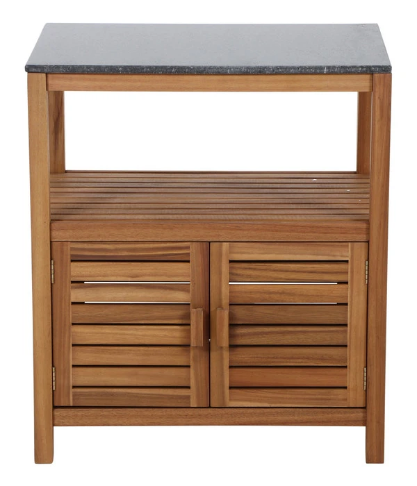 Bei einem Küchenmöbel steht die Funktion im Vordergrund. Das Siena Garden Outdoorküche Mittelteil Riva ist jedoch auch optisch ein Genuss. Aus massivem Akazienholz in attraktiver Lattenoptik gefertigt wird es zum dekorativen Einrichtungselement Ihrer Outdoor-Wohnung. Dank der geölten Oberfläche kann das äußerst harte und witterungsbeständige Akazienholz seine ausdrucksstarke Maserung optimal zeigen und verleiht dem Möbelstück seine lebendige Optik und warme Ausstrahlung. Gekrönt wird Ihr Terrassenmöbel von einer edlen Granitarbeitsplatte. Zwei hochwertige Naturmaterialien also, die für eine individuelle Optik sorgen.
