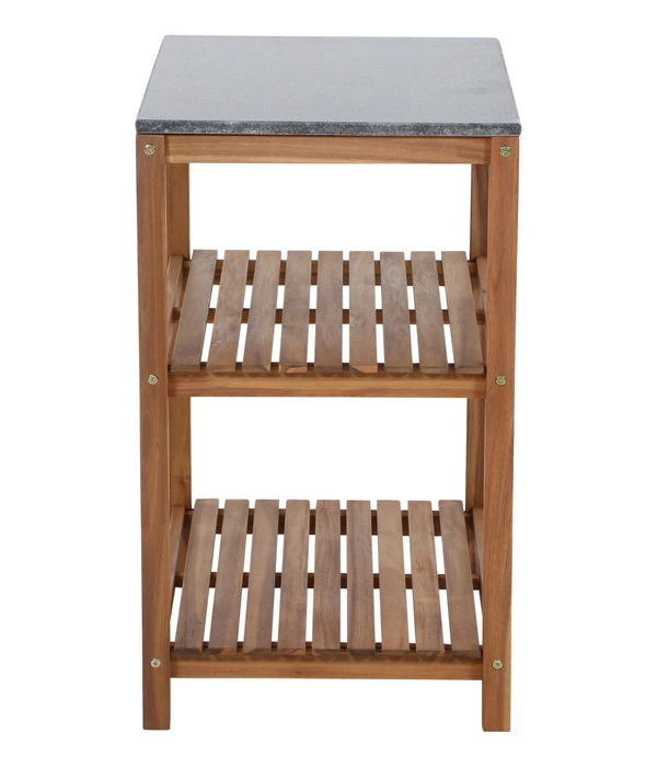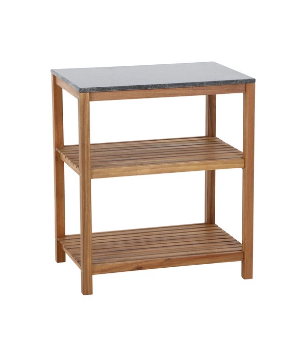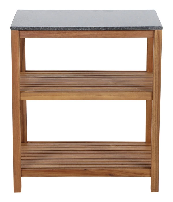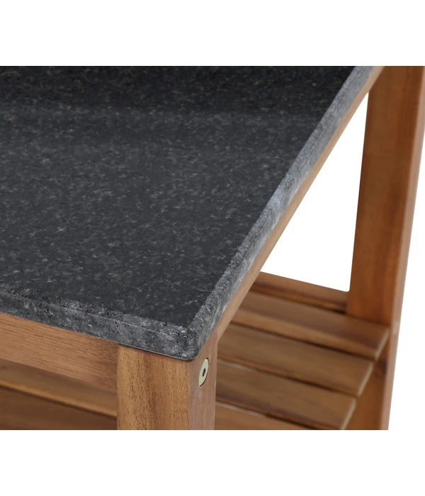 Das Siena Garden Outdoorküche Mittelteil Riva lässt auch in puncto Qualität keine Wünsche offen. Ganz aus massivem Akazienholz gefertigt und geölt kommt die typische Holzmaserung ideal zur Geltung und ist das edle, Hartholz bestens auf seinen Außeneinsatz vorbereitet. Die Arbeitsplatte besteht – quasi als Krönung des hochwertigen Regals – aus dunklem Granit mit einer dezenten, individuellen Struktur.