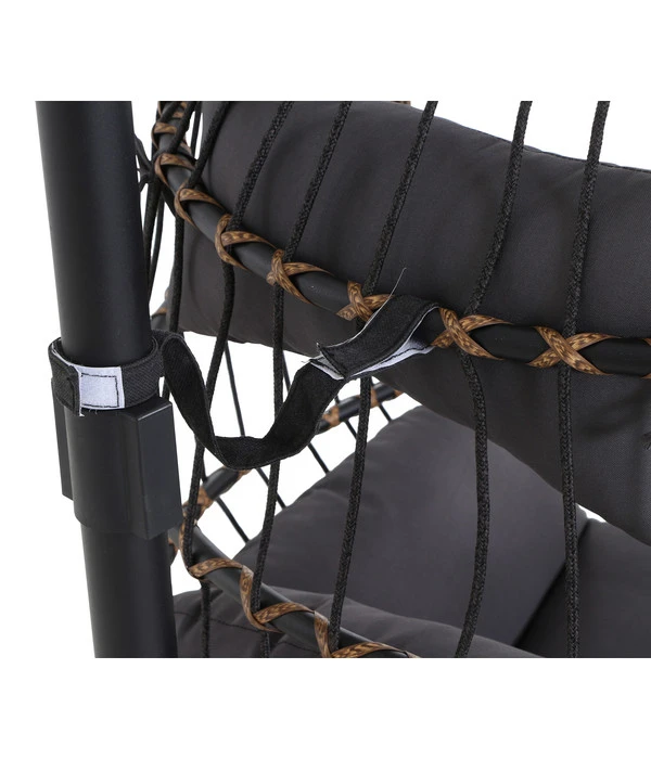 Der Siena Garden Salerno Hängekorb ist ein Kunstwerk aus Gardino®-Geflecht in Royal Oak, das Ihnen stabile Sicherheit bietet und mit seinem lockeren Flechtmuster gleichzeitig für luftige Leichtigkeit sorgt. Das elegant geschwungene Stahlgestell hält sich optisch zurück und sorgt quasi aus dem Hintergrund für den festen Stand. Eine Stahlkette mit Feder verbindet den Korb absolut sicher mit dem Gestell und unterstützt dabei das Schwebegefühl. Die zusätzliche Sicherheitsleine wiederum sorgt dafür, dass Sie es beim Schaukeln nicht übertreiben können.