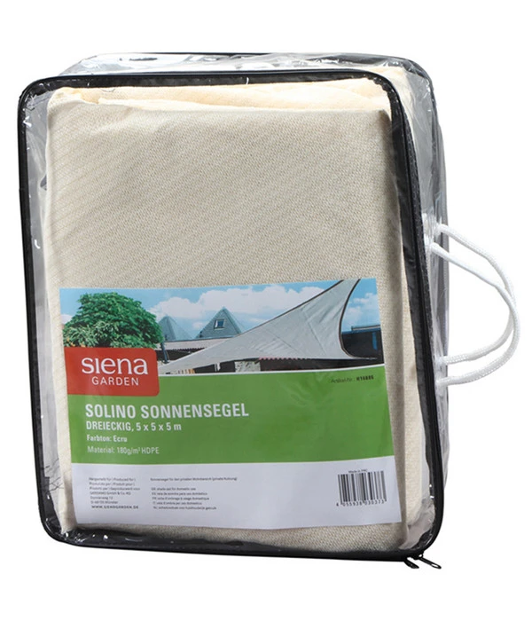 An wunderschönen Sommertagen zieht es jeden ins Freie. Damit Sie sich keinen Sonnenbrand oder gar Sonnenstich holen, ist die Benutzung eines Sonnenschirms sehr wichtig. Gerade bei wenig Platz wird es mit einem Schirm schwierig. Dann ist das Siena Garden Sonnensegel Solino 3-Eck genau der perfekte Schattenspender. Es ist Pavillon, Markise sowie Sonnenschirm in einem. Besonders positiv ist, dass Sie dieses vertikal, horizontal sowie schräg befestigen können. Das Segel schützt Sie allerdings nicht nur vor starker UV-Strahlung, sondern ist auch der perfekte Sichtschutz. Dank der besonderen Struktur des aus HDPE bestehenden, offenen Gewebes können Sie das Siena Garden Sonnensegel Solino 3-Eck selbst bei starkem Wind aufspannen- und das von März bis September.