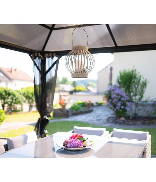 Kennen Sie schon Ihre neue Sommer-Residenz? Das Lieblingsplätzchen, das die Familie gerne aufsucht, um gemütliche Stunden im Freien zu verbringen und um das Ihre Freunde Sie ein kleines bisschen beneiden? Richtig, es ist der Sojag Pavillon Verona! An diesem lauschigen Plätzchen können Sie morgens gemütlich frühstücken, sich während der Mittagsstunden vor Sonne und Hitze schützen und abends bis in die Nacht hinein plaudern, lesen, träumen oder zünftig feiern. Und wenn bei Einbruch der Dämmerung hungrige Insekten über Sie herfallen wollen, ziehen Sie einfach die Moskitonetze aus Nylon zu und lassen sich in Ihrem Vergnügen nicht stören. Doch der Pavillon ist nicht nur ein Profi in puncto Funktionalität, der Sie vor UV-Strahlen, Hitze und Regen schützt, er ist auch ein exquisiter Blickfang im Garten. Genießen Sie das edle Design wie die Qualität vom größten und bekanntesten kanadischen Pavillon-Produzenten: den Sojag Pavillon Verona!