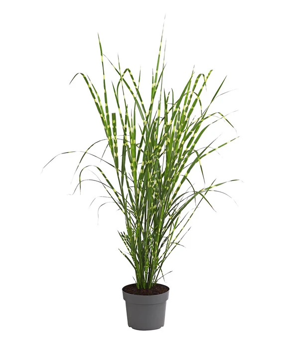 Manche Pflanzen protzen mit ihrem verschwenderischen Blütenreichtum, andere zeigen ihren Blütenschmuck nur zögerlich und unter besonderen klimatischen Bedingungen. Wer aber so prächtigen Blattschmuck präsentieren kann wie das Chinaschilf ‘Strictus‘, braucht keine Blüten, um zum Star eines Beetes zu werden. Die langen, schlanken, mittelgrünen Blätter tragen nämlich gelbe Querstreifen, die wie mit einem dicken Malerpinsel aufgetragen wirken und dem Ziergras eine warme Ausstrahlung verleihen. Das Chinaschilf ‘Strictus‘ stammt aus Südostasien und gehört zur großen Familie der Chinaschilfe, die dort an Hängen und auf Flächen in größeren geschlossenen Gruppen zu finden sind. Und war ein Sommer ganz besonders warm, gönnt uns das Stachelschweingras im September und Oktober sogar den Anblick seiner bräunlichen, federartigen Blütenrispen, die nicht spektakulär, aber trotzdem zum Reiz des Chinaschilf ‘Strictus‘ beitragen. Vor allem, wenn die Blütenstände im Winter von Raureif überzuckert sind und dem Beet Struktur geben.
