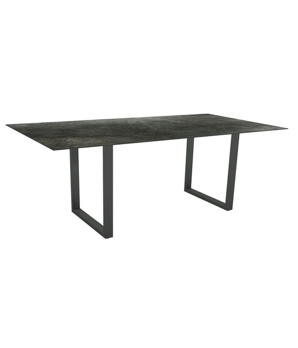 Der eckige Gartentisch von Stern besticht durch sein modernes Design und passt sich an jeden Ort an. Dank seines stabilen Aluminium-Gestells können Sie sich auf eine sehr gute Belastbarkeit verlassen. Auch die Tischplatte weiß zu überzeugen. Diese ist 1,3 Zentimeter stark und aus dem robusten Material HPL gefertigt. Das ist aber noch längst nicht alles. Schließlich ist die Reinigung kinderleicht und wird Ihnen wenig Arbeit bereiten. Es genügt, wenn Sie die Platte einfach mit einem feuchten Tuch abwischen – fertig! Profitieren Sie von einer langen Nutzungsdauer und bestellen Sie jetzt den Stern Kufentisch!