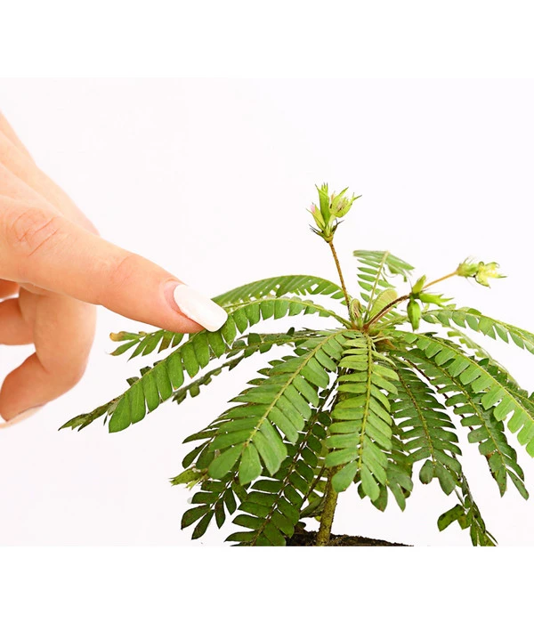 Wer diese exotischen Pflanzen entdeckt, wird sicherlich gleich von ihrer dekorativen Optik angezogen. Mit ihren fein gefiederten Wedeln an einem im Alter verholzendem Stamm sehen sie aus wie Miniatur-Palmen. Wenn Sie diese Pflanzen-Rarität dann aber zu Hause bei sich haben, werden Sie hautnah erleben, dass die Pflanzen ‚leben‘. Und zwar nicht nur, indem sie langsam wachsen, um auf ihre maximale Wuchshöhe von 30 cm zu kommen. Nein, die Südseepalmen haben einen echten Tag-/Nacht-Rhythmus. Sie werden erstaunt beobachten, wie die Pflanzen in der Dämmerung die Palmwedel wie einen Regenschirm zusammenklappen, ähnlich wie wir am Abend die Augen schließen. Auch bei zu grellem Licht oder bei Berührung ist die gleiche Reaktion zu beobachten, wie bei einer Mimose. Ein Schauspiel, das Groß und Klein immer wieder aufs Neue fasziniert. Noch eine Besonderheit zeichnet diese außergewöhnliche Zimmerpflanzen aus: ihre kleinen rosafarbenen Blüten sind zwar nicht spektakulär, sie wirft ihre Samen aber selbstständig im Umkreis von mehreren Zentimetern um sich, aus denen sich dann Jungpflanzen entwickeln.