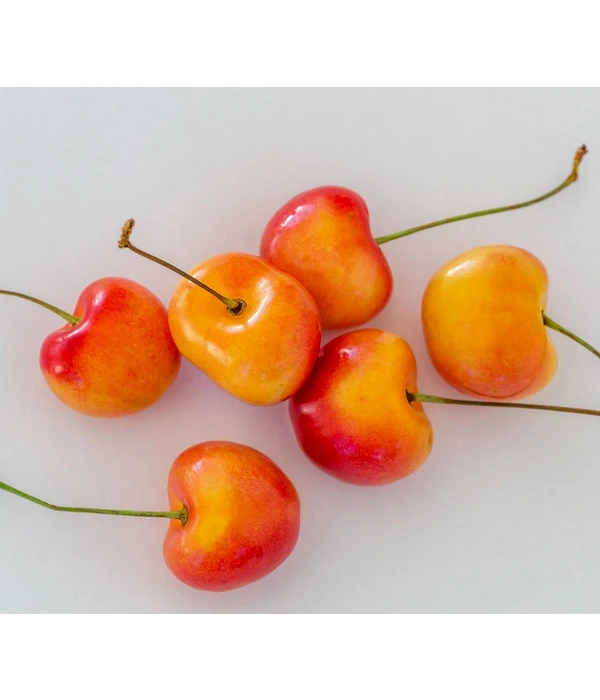 Sie suchen die perfekte Kirsche? Dann ist die Sorte ‚Große Prinzessin‘ genau die richtige für Sie. Ihre Kirschen sind so, wie man es sich wünscht. Sie sind groß und gleichmäßig herzförmig. Farblich schimmern sie in Gelb mit rosaroten Musterungen. Die Früchte sehen aber nicht nur toll aus, sie schmecken auch köstlich. Die saftigen Kirschen sind würzig süß, fest und aromatisch. Der Saft dieser Sorte ist zudem farblos, Sie haben also keine roten Flecken mehr auf Kleidung oder Tischdecken. Ein weiteres Highlight ist, dass die Kirschen nach dem Kochen ihren Geschmack verändern. Sie werden dann säuerlich. Dehners ‚Große Prinzessin‘ ist vielseitig einsetzbar. Am besten schmeckt sie natürlich frisch vom Baum, aber durch ihr tolles Aussehen eignet sie sich auch zur Verzierung von Kuchen oder zum Verarbeiten. Die mittelstarken Ernten setzen früh ein und sind sehr regelmäßig. Auch die Blüten sollten nicht außer Acht gelassen werden. Sie sind weiß, sehr schön und duften angenehm zwischen April und Mai.