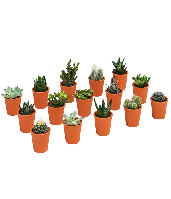 Sukkulenten- & Kakteen-Set in Keramik, verschiedene Sorten, 15-teilig