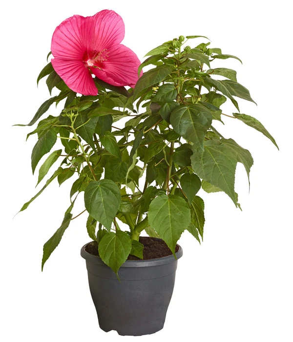 Der Sumpf-Roseneibisch gedeiht an einem sonnigen bis halbschattigen Standort am besten, ganz gleich, ob auf Terrasse, Balkon oder ausgepflanzt im Garten. Zu heiß sollte es der Pflanze allerdings nicht werden, da sonst unschöne Blattverbrennungen drohen. Erhält sie einen nahrhaften, humosen Boden und wird regelmäßig gewässert, macht sie sich schnell auf, ihre maximale Wuchshöhe zu erreichen und wunderschöne Blüten zu produzieren. Vorausgesetzt, sie wird dabei von Düngergaben mit Dehner Hibiskus-Dünger im ein- bis zweiwöchigen Abstand unterstützt. Vermeiden Sie auf jeden Fall Staunässe, denn darauf reagiert sie wenig erfreut. Im späten Herbst dann sollte die robuste Staude, die winterhart ist und bis zu -15°C toleriert, komplett zurückgeschnitten werden. Wächst sie im Kübel, bietet sich die Überwinterung an einer dunklen, kühlen Stelle im Haus an. Wurde er ausgepflanzt, benötigt der Sumpf-Roseneibisch einen guten Winterschutz, um dann ab Mai wieder mit voller Kraft auszutreiben.