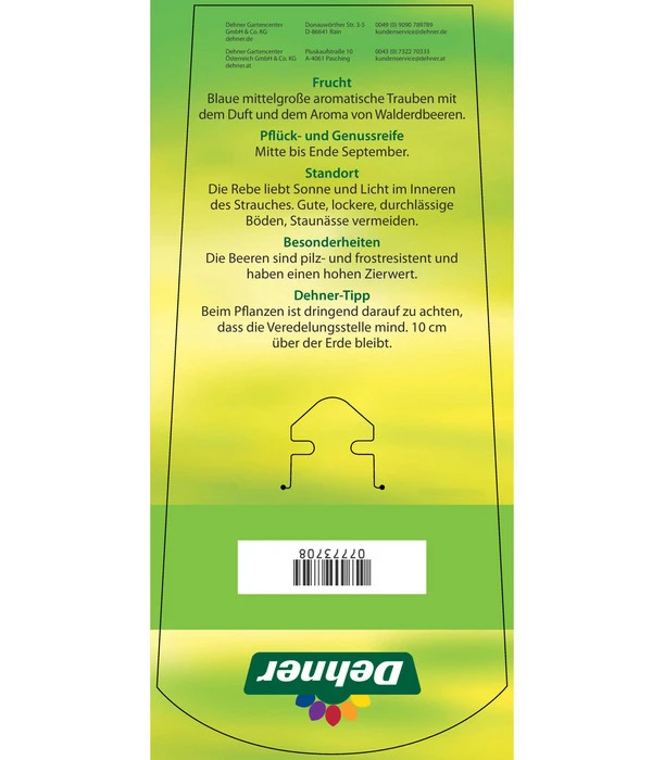 Weintrauben haben keine besonderen Bodenansprüche, sie können in normaler Gartenerde wachsen. Allerdings reagieren sie empfindlich auf Staunässe. Falls Sie die Trauben in Gefäße pflanzen, sollten diese also einen Wasserablauf besitzen. Ein sonniger, warmer Standort, wie in Weinbaugebieten, wird bevorzugt und ist wichtig für den Reifeprozess der Trauben. Wie alle Ranker, benötigt auch die ‚Erdbeertraube“ ein Rankgitter oder ein Spalier, an welchem sie sich festhalten kann. Die letztlich Höhe und Breite bestimmt übrigens die Rankhilfe. Denn weiter wächst die Pflanze nicht. Die Sorte ist übrigens sehr tolerant gegenüber Frost und Pilzkrankheiten.
