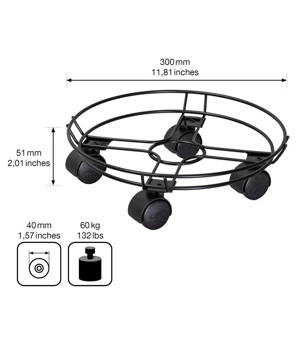 Das schlichte und doch ansprechende Design des Pflanzenrollers Draht von Wagner fügt sich in nahezu jede Einrichtung ein und ist somit an Ihrem Arbeitsplatz oder in Ihrer Wohnung auch optisch ein Gewinn. Überdies ist dessen Konstruktion überaus stabil, womit Sie auch schwere Pflanzen nahezu mühelos verschieben können. Da der Wagner Pflanzenroller Draht über wendige Doppelrollen verfügt, können Sie ihn problemlos auf weichen, robusten Bodenoberflächen verwenden. Überaus praktisch ist auch dessen rundum verlaufender Schutzring, welcher für einen sicheren Stand Ihrer Pflanzen bei Bewegung sorgt. Der verwendete pulverbeschichtete Stahl des Pflanzenrollers Draht ist zudem äußerst robust und somit besonders langlebig. Zögern Sie also nicht und bestellen Sie am besten noch heute Ihren Wagner Pflanzenroller Draht!