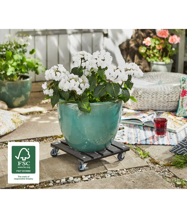 Sie wünschen sich ein Accessoire, mit dem Sie Ihre Blumenkübel bequem und ohne jede Hilfe umstellen können? Mit dem Wagner Pflanzroller lassen sich auch schwere Pflanztöpfe genau dort platzieren, wo es Ihnen gefällt! Ob Sie Ihre Lieblingsblume im Frühling nach draußen bringen oder einfach beim Wischen den Boden frei haben möchten – mit dem attraktiven Roller bleiben Sie beweglich! Er macht Ihnen das Umstellen schwerer Pflanzen ganz unkompliziert, bewährt sich auch beim Verschieben Ihrer Möbel und gibt Ihren Accessoires einen schönen Platz. Als fester Untersatz bietet er Ihren Pflanzen eine schöne Plattform und verhindert Bodenkontakt und Staunässe.