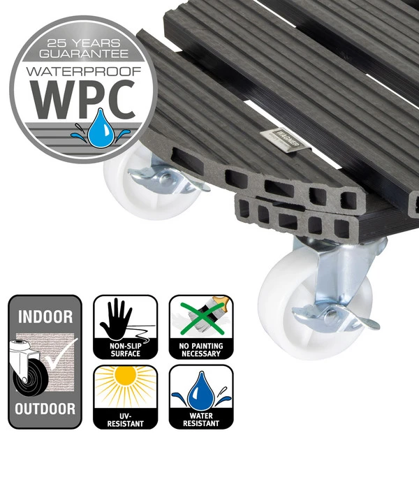 Der Wagner Pflanzroller punktet mit seiner geriffelten Oberfläche, die für einen rutschfesten und sicheren Halt sorgt. Seine hochwertigen Rollen sind zudem besonders leichtgängig. So können Sie den Roller komfortabel verschieben und einfach dort platzieren, wo es Ihnen gefällt. Denken Sie vielleicht darüber nach, den Wagner Pflanzroller in Ihrem Garten zu verwenden? Kein Problem. Dieser Roller ist ebenso für den Einsatz im Freien geeignet. Lassen auch Sie sich von dem Wagner Pflanzroller begeistern und bestellen Sie ihn noch heute.
