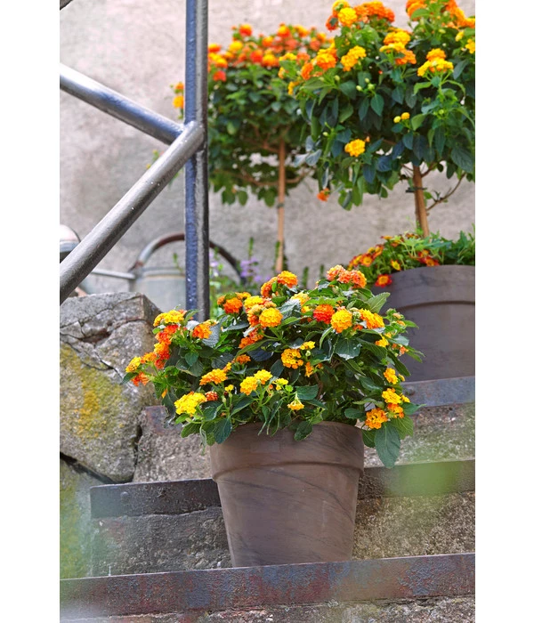 Die Lantane, besser bekannt unter dem Namen Wandelröschen, stammt aus der Familie der Eisenkrautgewächse und ist bei uns eine beliebte, farbenprächtige Kübelpflanze. Das Interessante am Wandelröschen, was ihm auch den Namen gegeben hat: seine runden Blütenköpfe verändern sich im Auf- und Verblühen und diesen faszinierenden Farbwechsel kann man von Mai bis in den Oktober hinein beobachten. Mit dieser Pflanze auf Ihrer Terrasse oder dem Balkon haben Sie immer einen wunderschönen Blumenschmuck, über den Sie sich sogar nicht nur einen Sommer, sondern sogar viele Jahre lang freuen können.