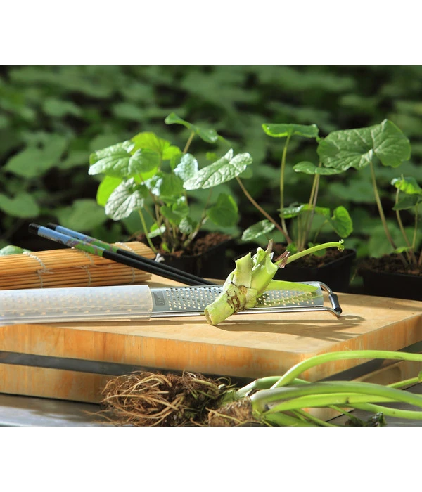 Wasabi gehört zu Sushi, wie Blume in den Garten. Doch eigentlich schmeckt frischer Wasabi ganz anders, als die gekaufte Paste. Er besitzt auch eine andere Farbe. Der Wasabi ist scharf, mit einem süßen Unterton und riecht intensiv nach ätherischen Ölen. Sie können alle Teile der Pflanze verzehren. Die Stiele und die Blätter der Pflanze sind weniger scharf als die Wurzeln. Sie werden gerne in bunte Salate gemischt oder als Dekoration auf verschiedensten Speisen genutzt. Die Wurzeln werden bis zu 20 cm lang und sind beige mit einer bräunlichen Schale. Den Wasabi zerreibt man, wie den Meerrettich. So entsteht die typische Paste, die zu Sushi gereicht wird. Sie passt aber auch zu anderen asiatischen Gerichten. Das Gute für alle, die nicht gerne scharf essen, den Geschmack von Wasabi aber gerne mögen: Die Schärfe bleibt nicht lange im Mund, sondern verfliegt sehr schnell wieder. Bis zur Ernte des Rhizoms müssen Sie sich allerdings bis zu 24 Monate gedulden.